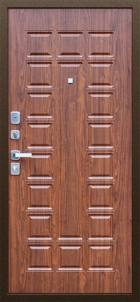 Надежная входная Дверь Спартак Орех темный премиум класса по цене 33 875 руб. Большая толщина стали защитит от проникновения в ваш дом, квартиру или коттедж. Используется очень качественная фурнитура: замки, цилиндры, ручки, защелки. Покрытие и отделка двери изготовлено под внимательным контролем производителя. Дверь имеет долгий срок службы и гарантию.